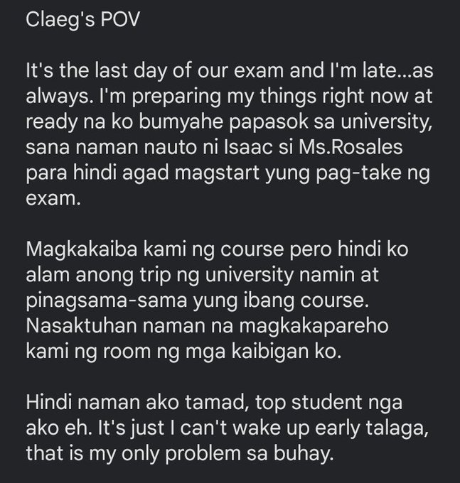 Alam naming mature ka na. Hindi niya inaasahang mas pipiliin niyang gumamit ng Ingles kaysa sa Filipino sa mismong asignatura niya. Maraming mga estudyante ang nasanay na sa aktuwal na mga klase dahil dahil dito ay maaaring may katanungan sila na kapag sagutin ng guro ay hindi pa rin nila maintindihan dahil mas sanay sila sa personal na pakikipagkomunikasyon.
