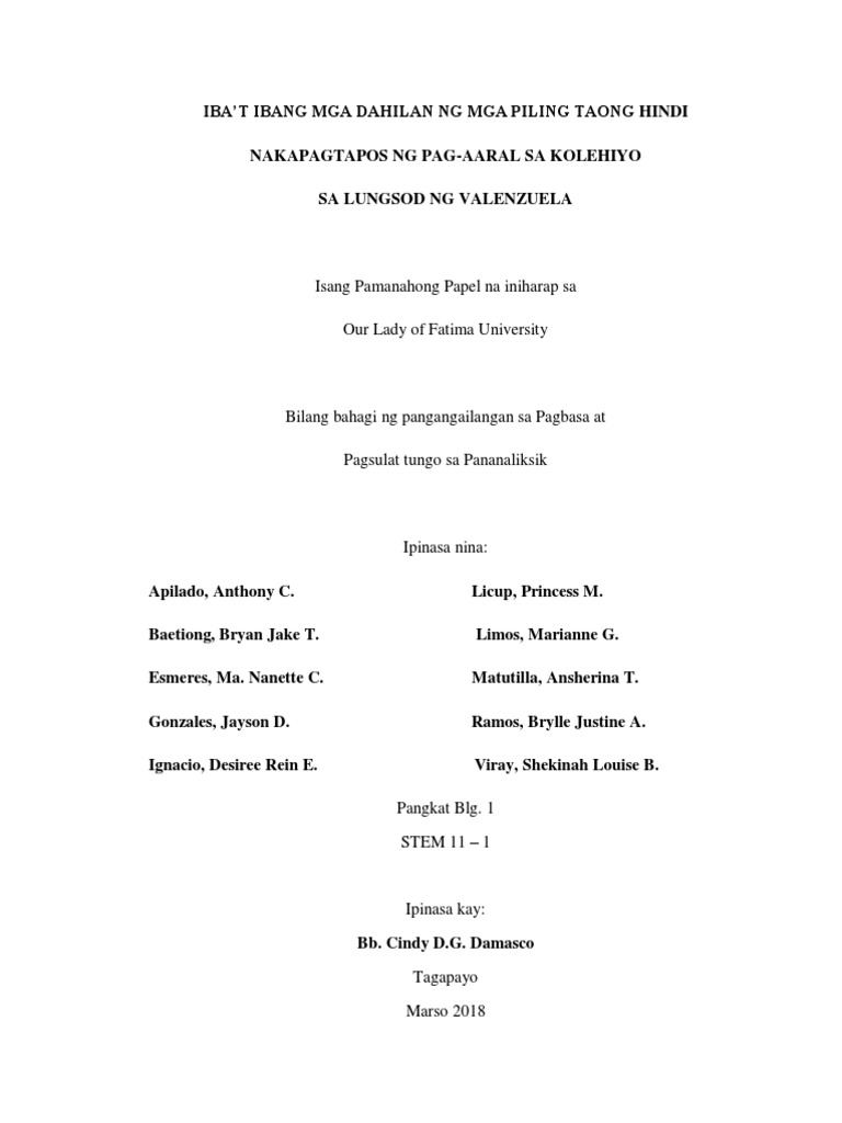 Iba T Ibang Dahilan Ng Mga Mag Aaral Upang Hindi Makapagtapos Pdf