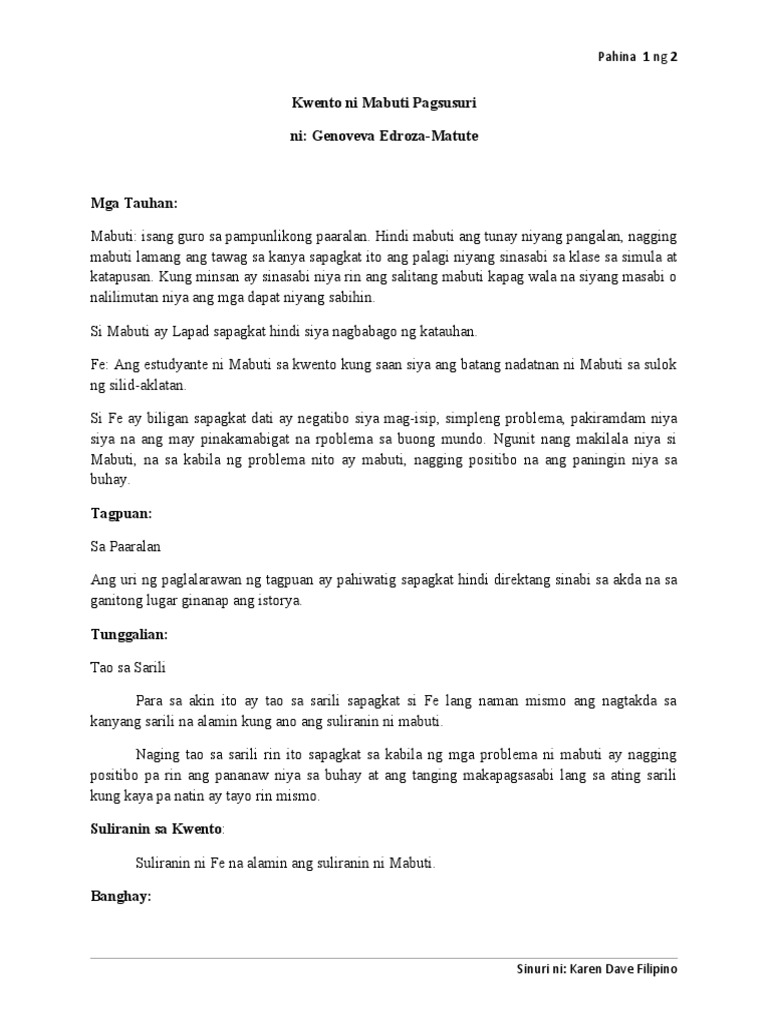 Kwento Ni Mabuti Pagsusuri Pdf