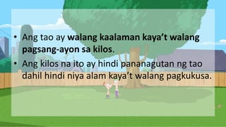 LAYUNINpptx - LAYUNIN BATAYAN NG MABUTI AT MASAMANG KILOS. Batayan ng Mabuti at Masamang Kilos LAYUNIN dito makikita o mahuhusgahan kung mabuti o masama ang kilos. Ito ay madalas mong ginagawa sa iyong pang-araw na buhay.